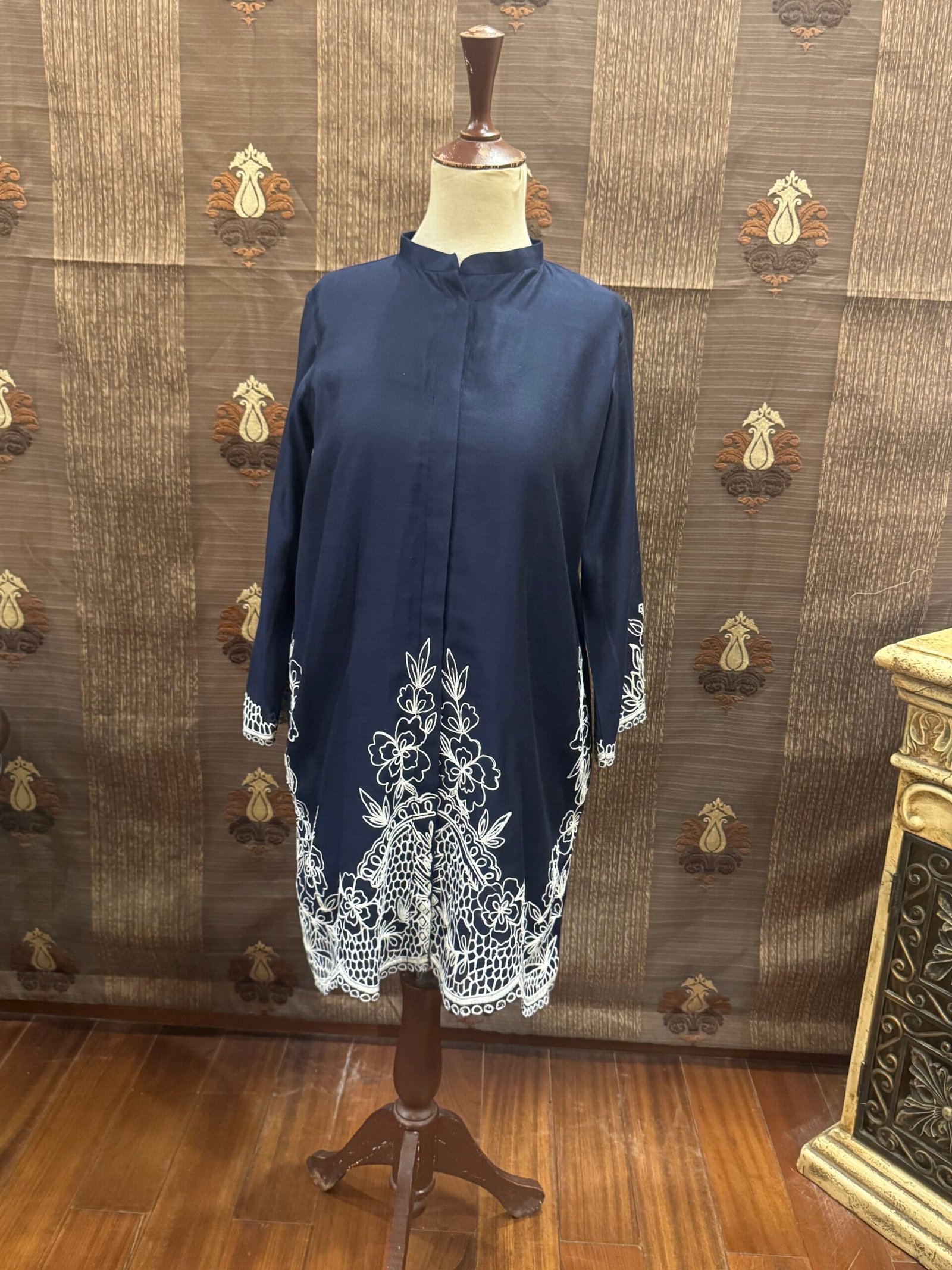 Mid Night Blue Cotton Net & Raw Silk Pret Co-ords (2 Piece)
