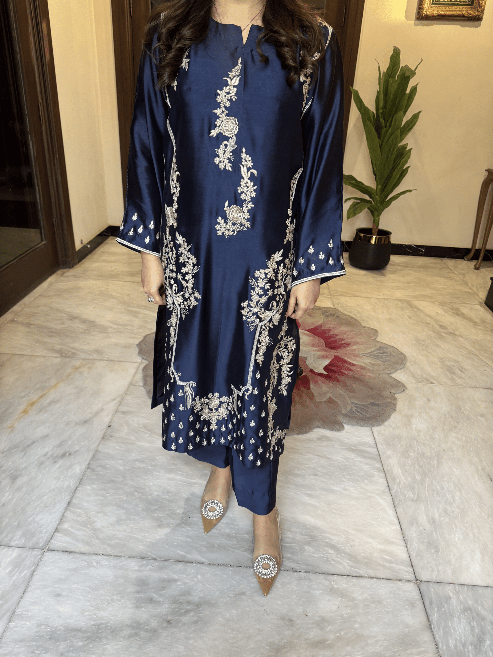 Ramadan & Eid Edit 2026 – Midnight Blue Sheesha Silk Ensemble - Image 4